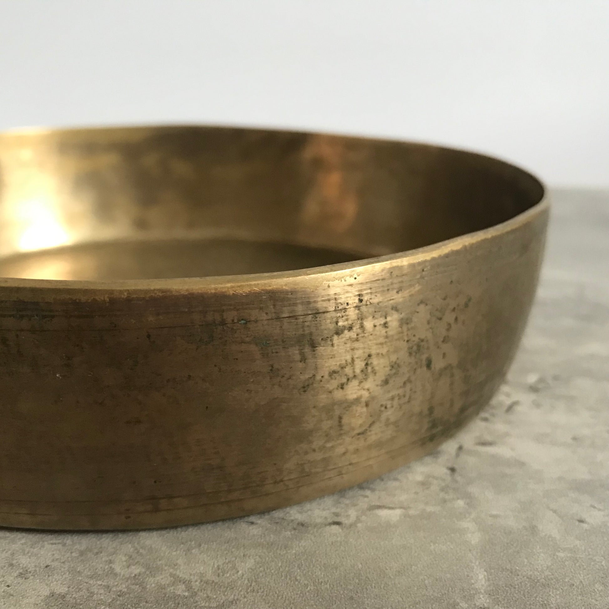 Antique Brass Shallow Singing Bowl / Flower Vessel